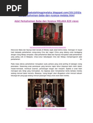 Ilmiah Masyarakat Baba Nyonya Di Melaka Bandaraya Bersejarah Samb