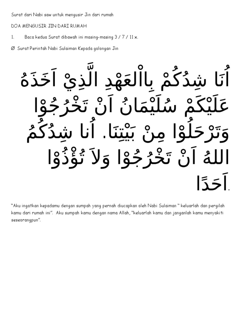 Surat Dari Nabi Saw Untuk Mengusir Jin Dari Rumah