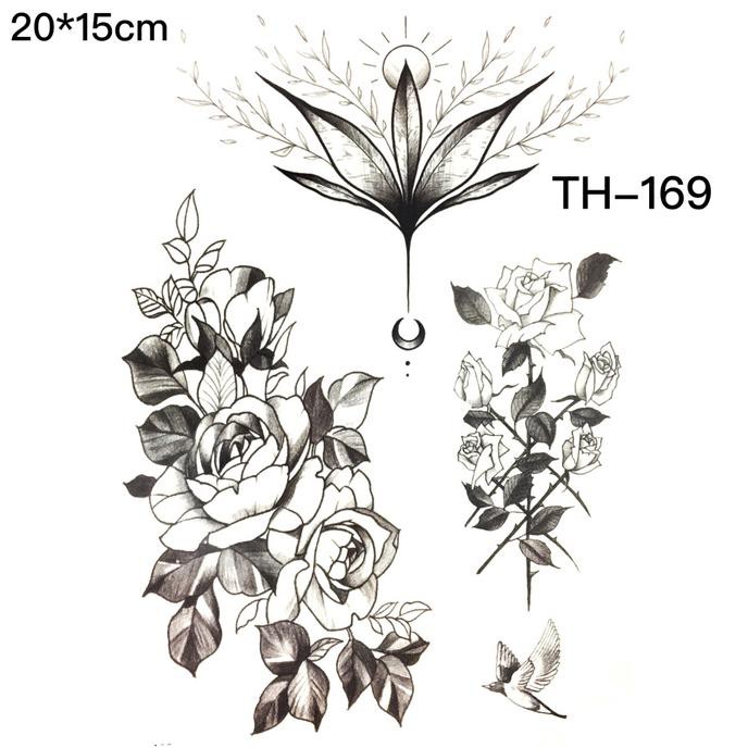 Tato Temporer Stiker Bunga Hitam Putih Set Th 169 Shopee Indonesia